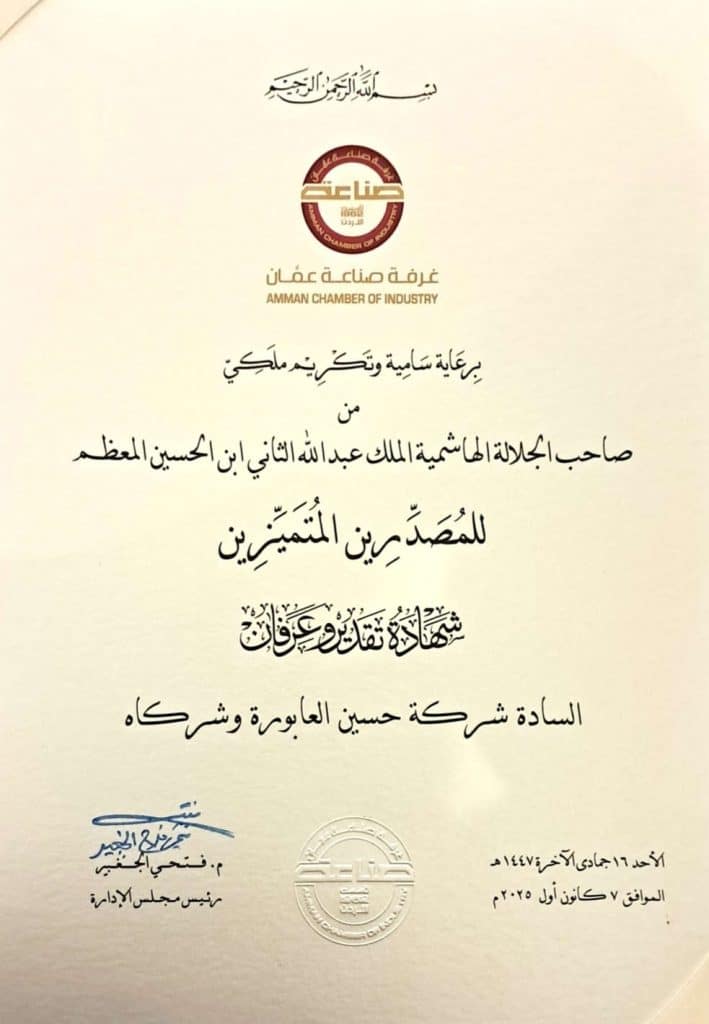 Our sincere appreciation to the Amman Chamber of Industry, led by Eng. Fathi Al-Jaghbir, for its continuous support and leadership.